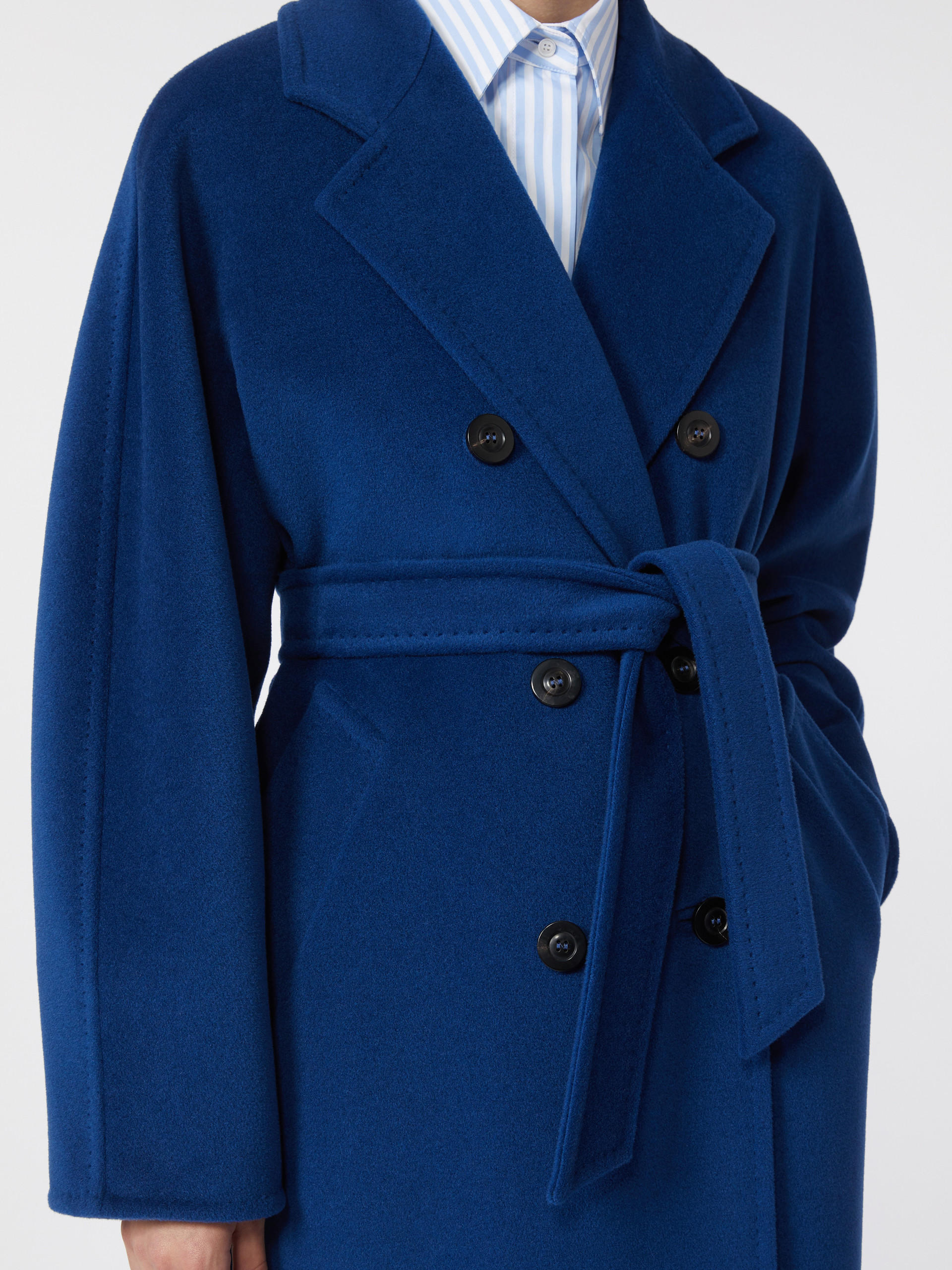 这款单品是现代与当代设计的标志性代表。101801大衣自Anne-MarieBeretta于1981年设计起,就成为了MAXMARA广为人知的服装单品。优雅比例,宽松剪裁,确保了这款服装永不过时,采用绵羊毛山羊绒混纺面料制成,精裁缝线装饰,翻驳领设计,配有嵌线口袋及同色腰带,前襟牛角扣开合,定制衬里(附品牌标),附赠木制衣架+防尘袋。