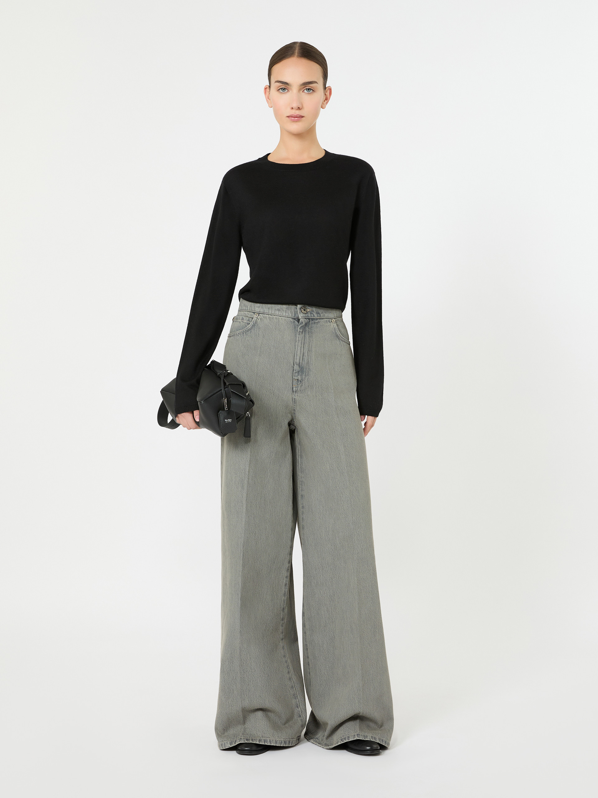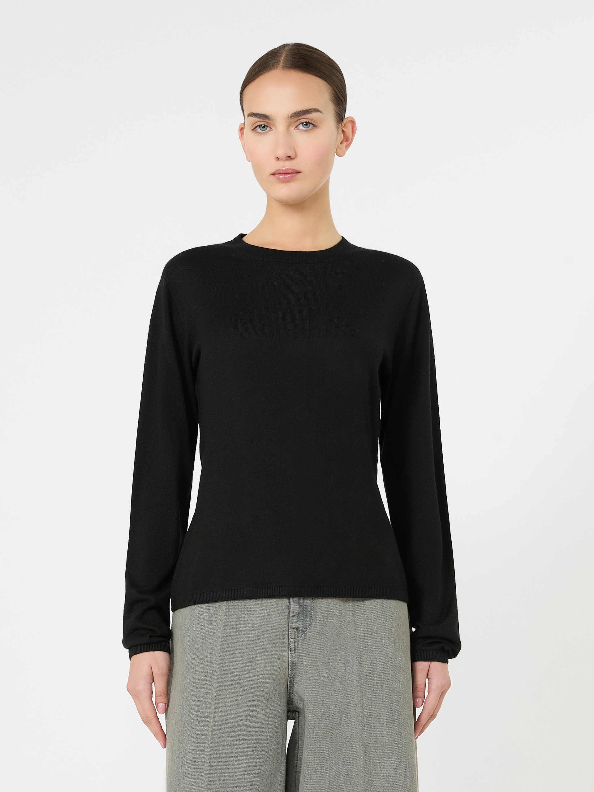 简约基础款羊绒毛衣,甄选超轻纯羊绒纱线,轻盈软糯,平针针织工艺,经典圆领设计,插肩袖,搭配直筒下摆。