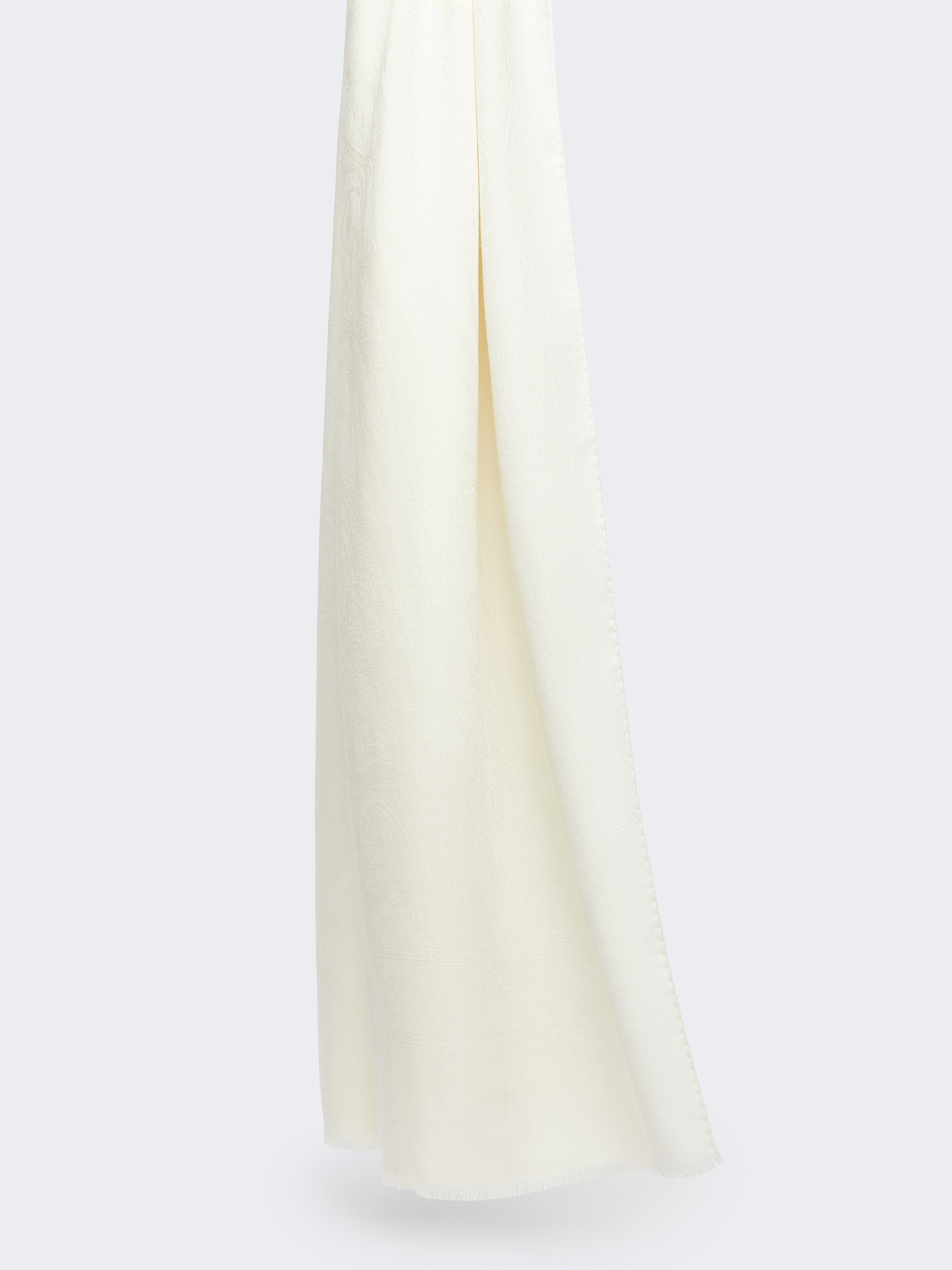 Stole embellished with a tone-on-tone jacquard knit that creates an all-over Paisley motif. - Wool and silk yarn stole - Fringed edge on the short sides - Measurements: 190 x 70 cm