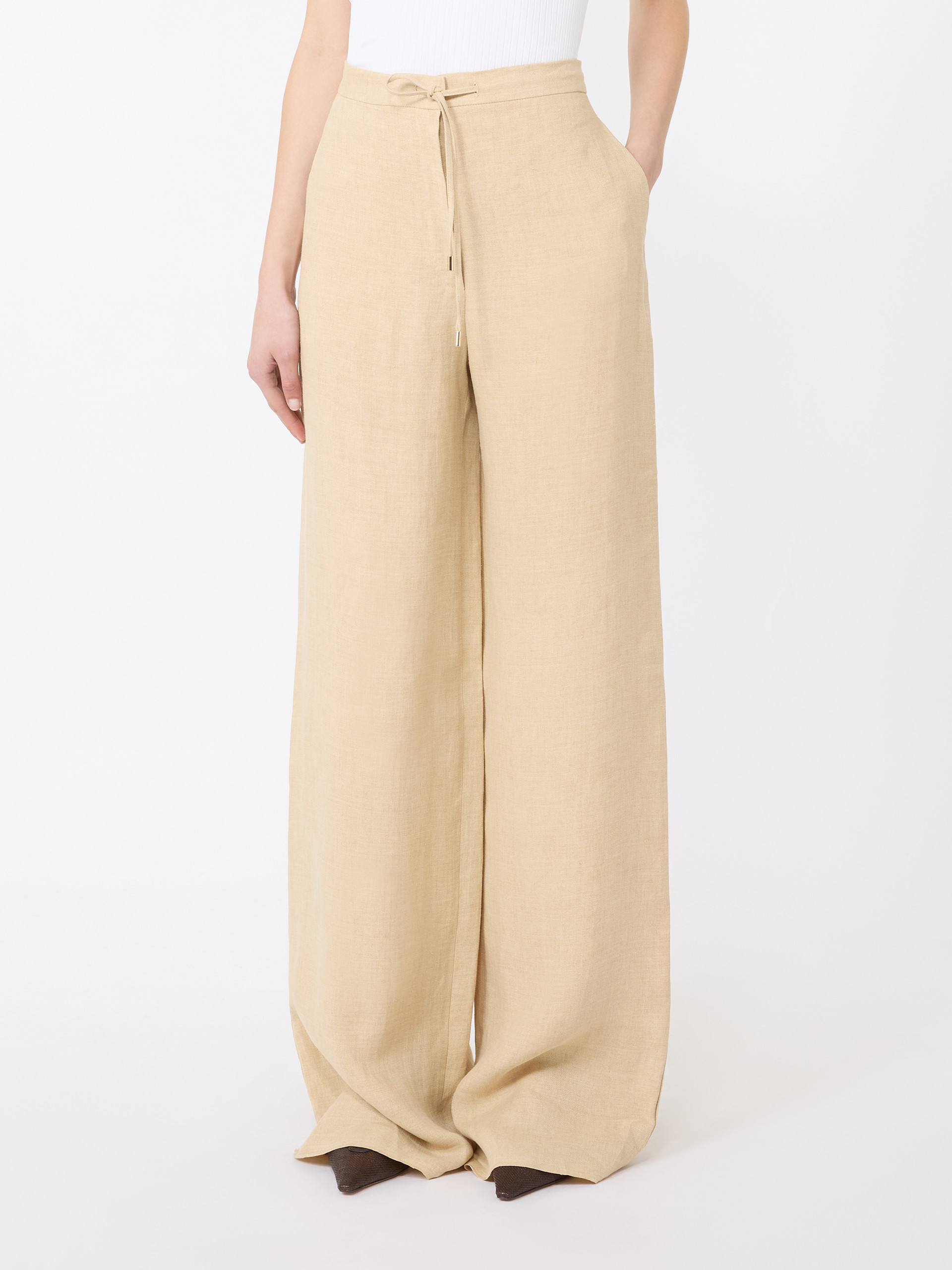 亚麻直筒休闲长裤