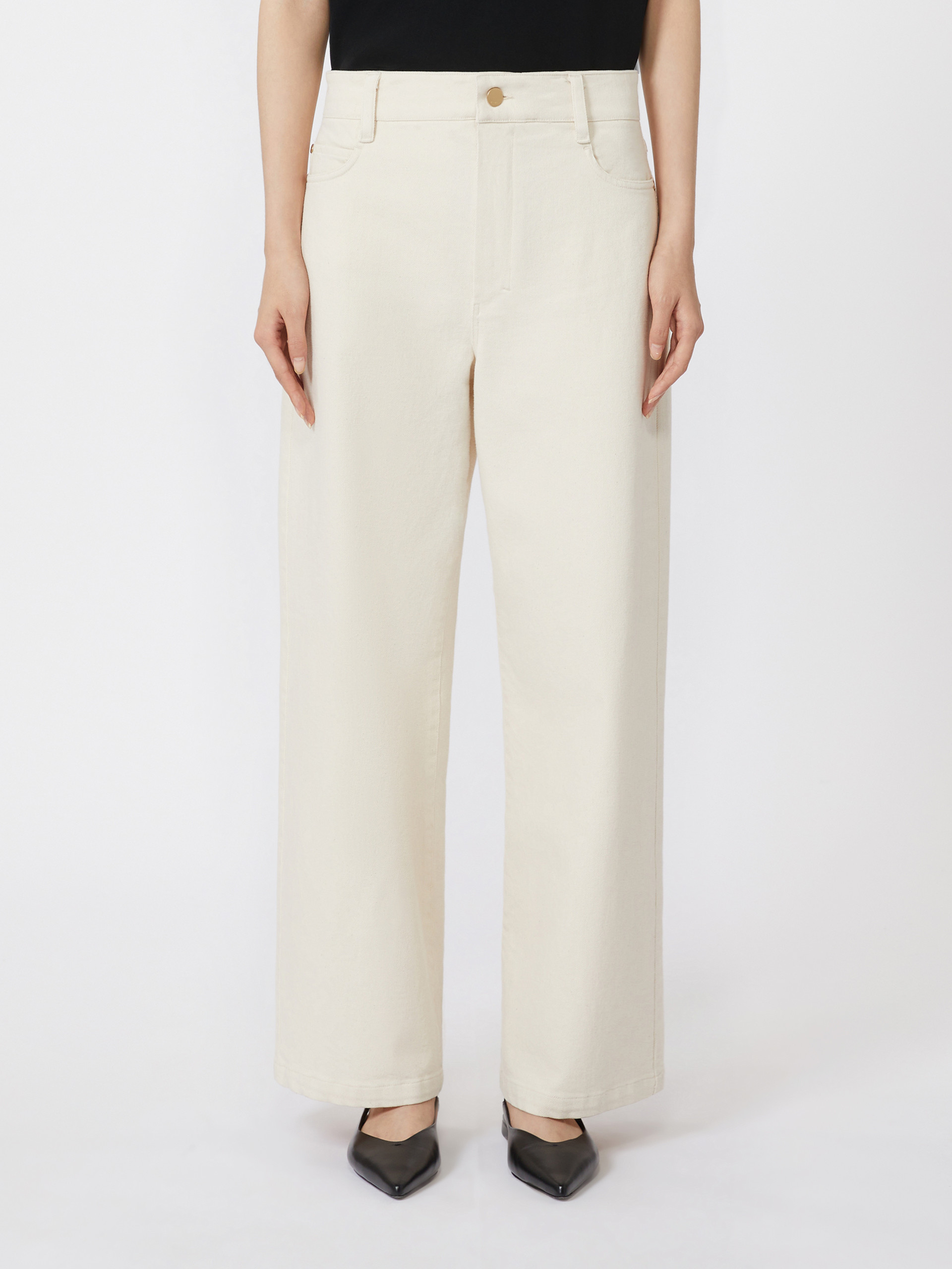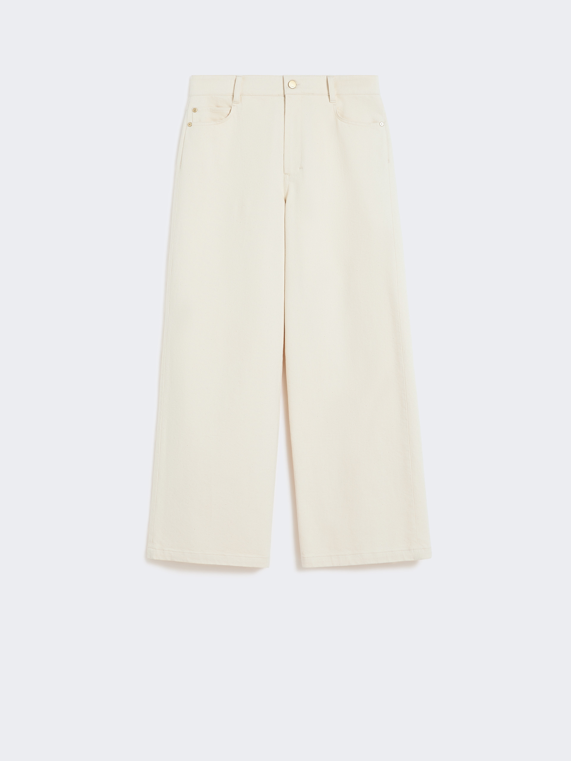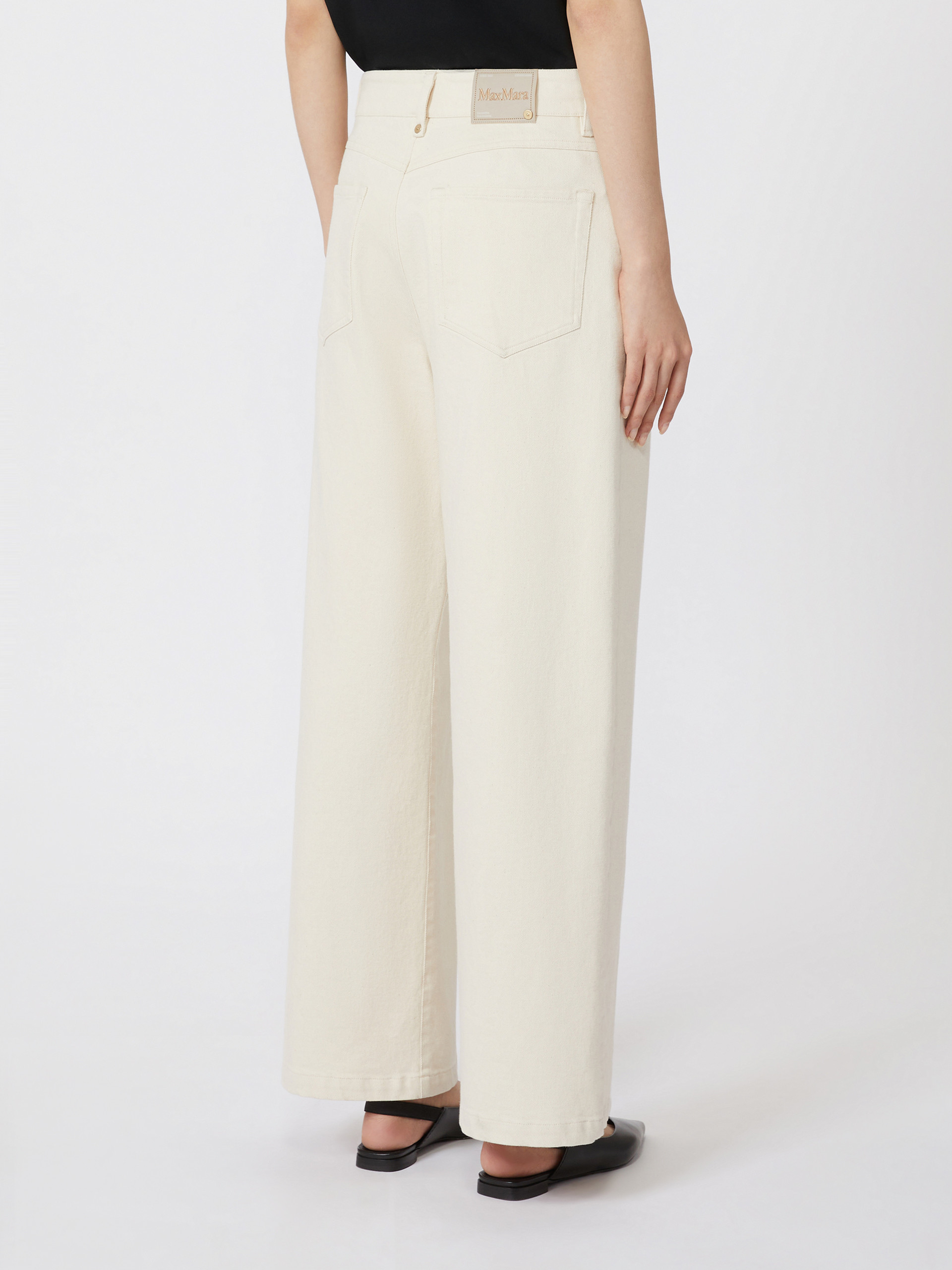 Wide-leg 5-pocket trousers. - Trousers in garment-washed stretch cotton bull denim - Wide leg - Fly-covered zip and tack button fastening - Patch rear pockets - Belt loop detail at the waist - Branded label on the back of the waist