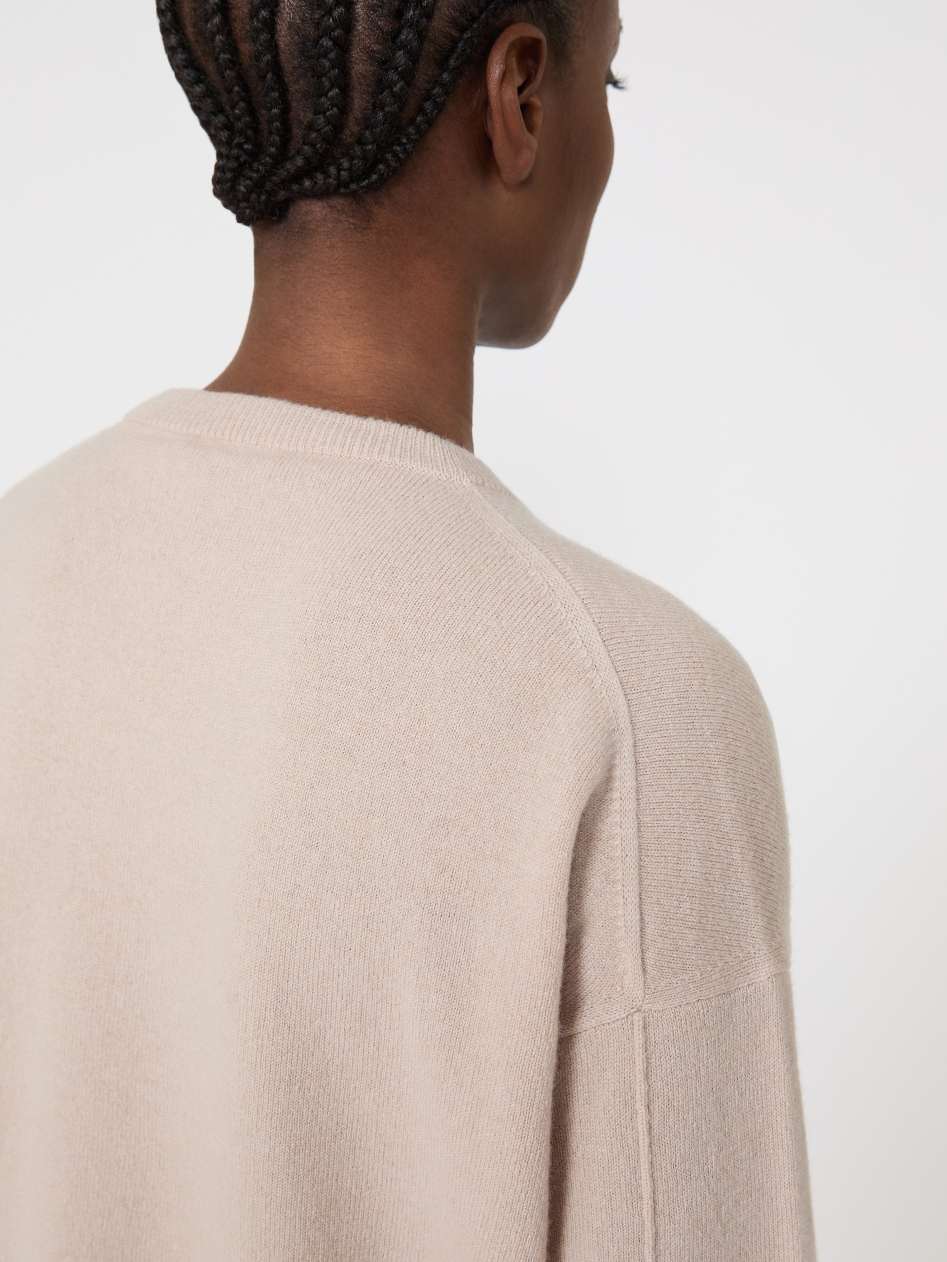 Sweater featuring full-length ribbing detail down the back of the sleeves. - Wool and cashmere yarn sweater - Boxy fit - Crew-neck - Long low set-in sleeves - Rib-knit neck and cuffs - Straight hem