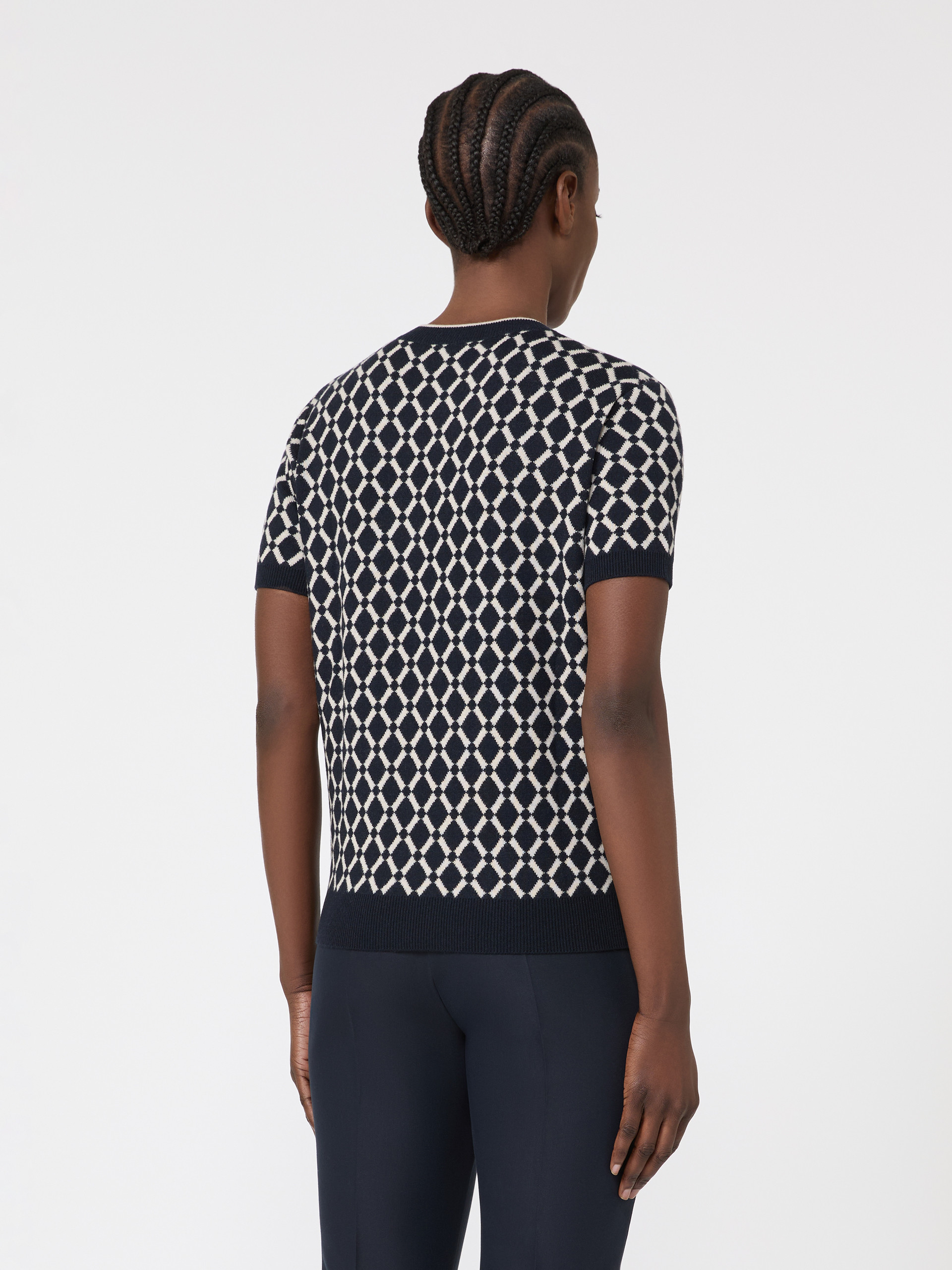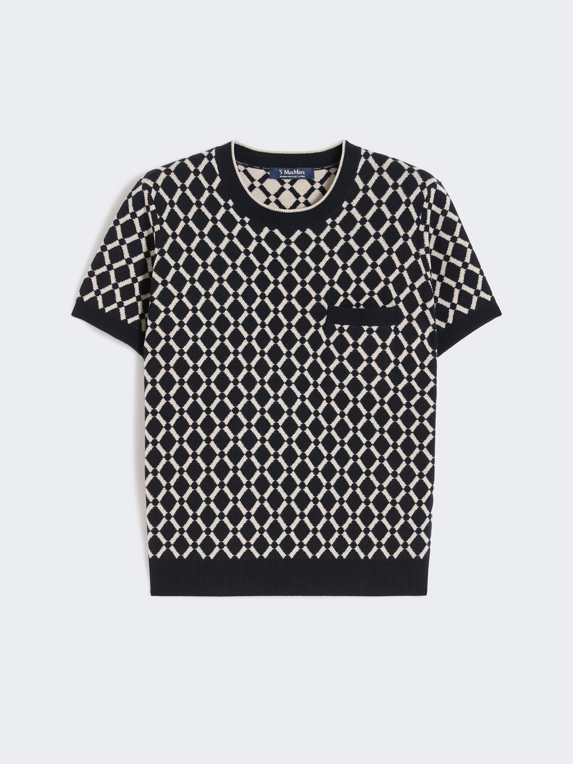 Basic jumper embellished with a jacquard depicting an all-over geometric design. - Pure wool yarn sweater - Straight fit - Crew-neck - Short set-in sleeves - Welt breast pocket - Rib-knit trims - Straight hem