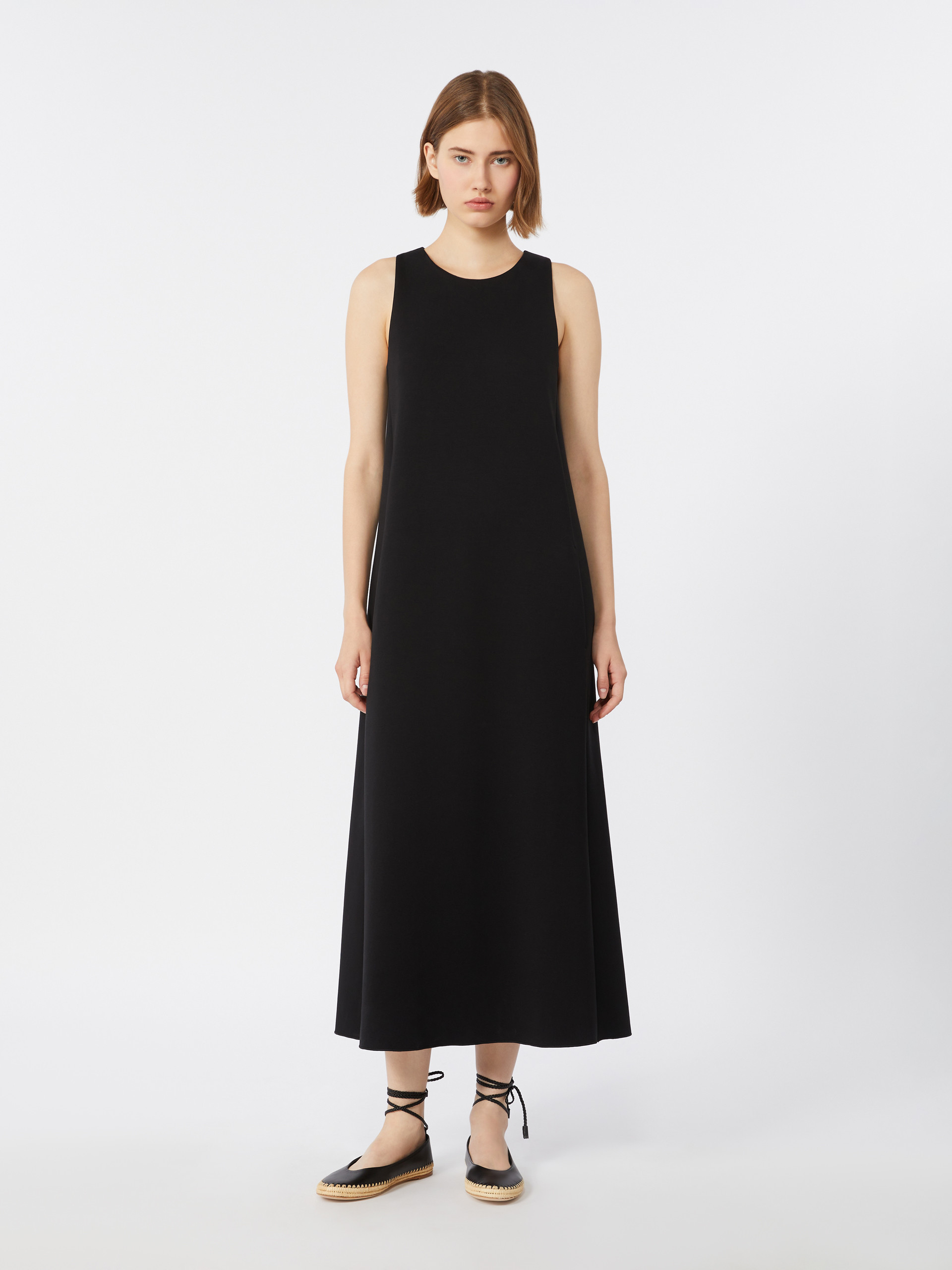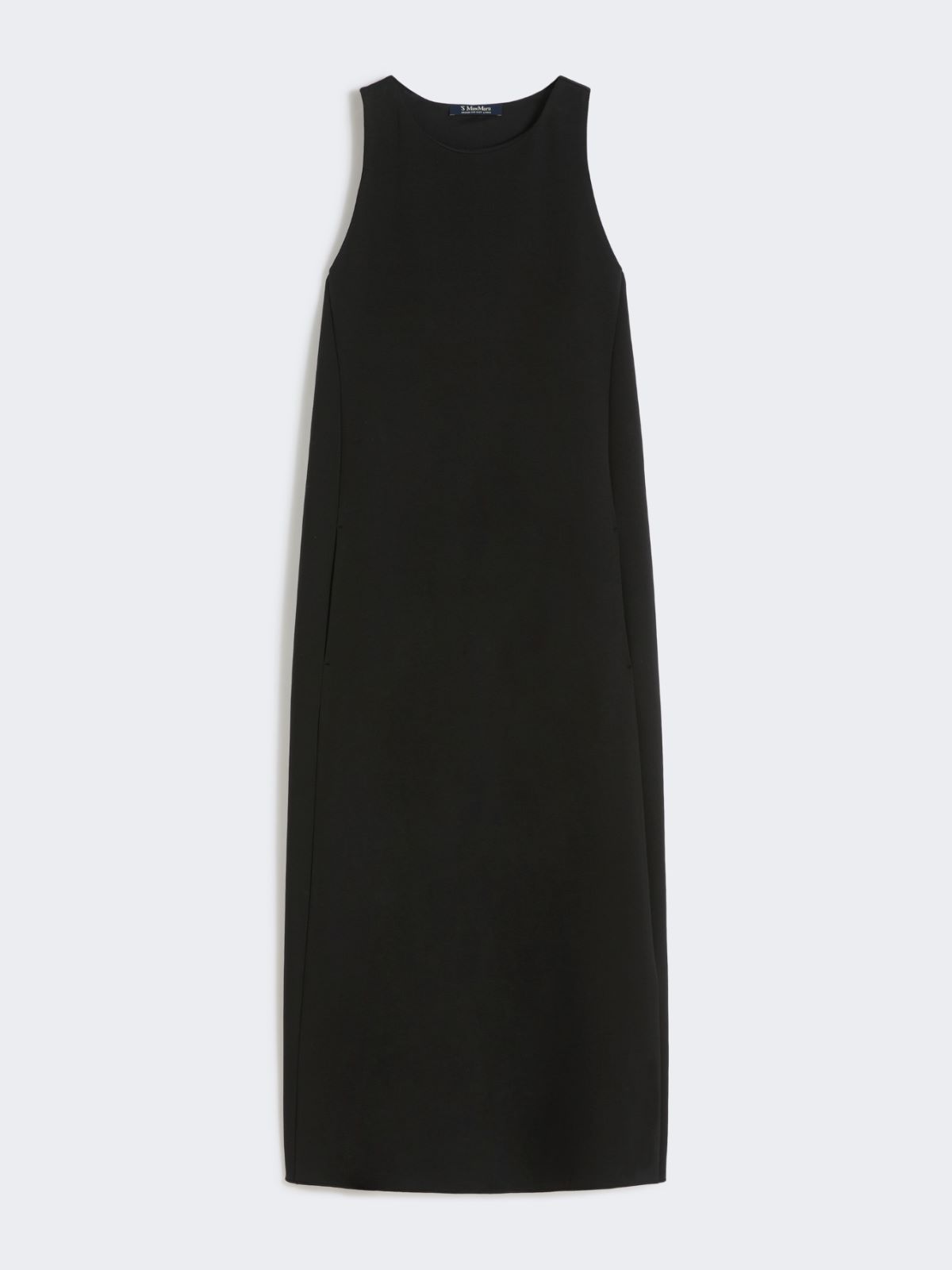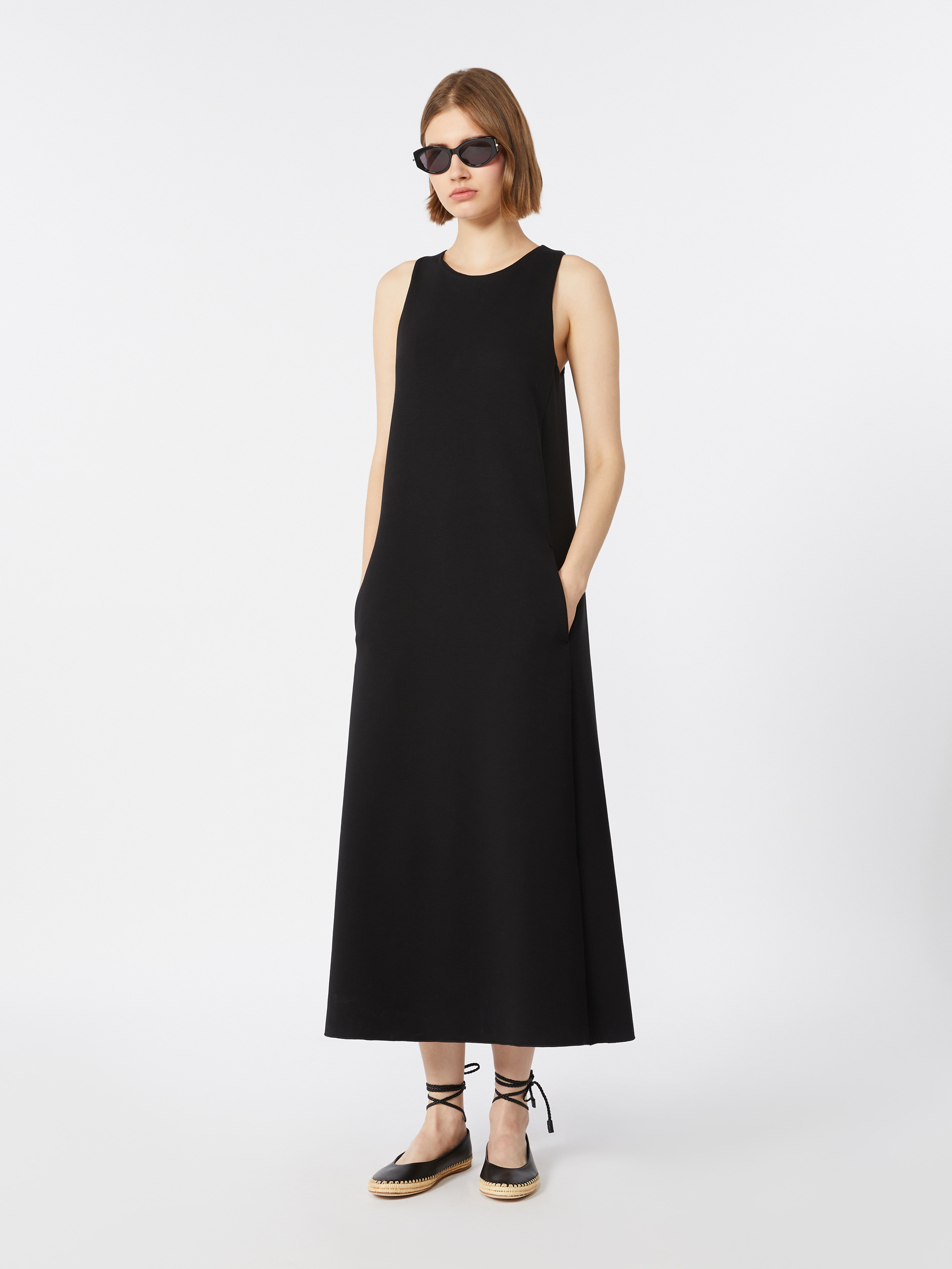 长款无袖连衣裙,下摆微喇。经典圆领设计,含衬里款式。
