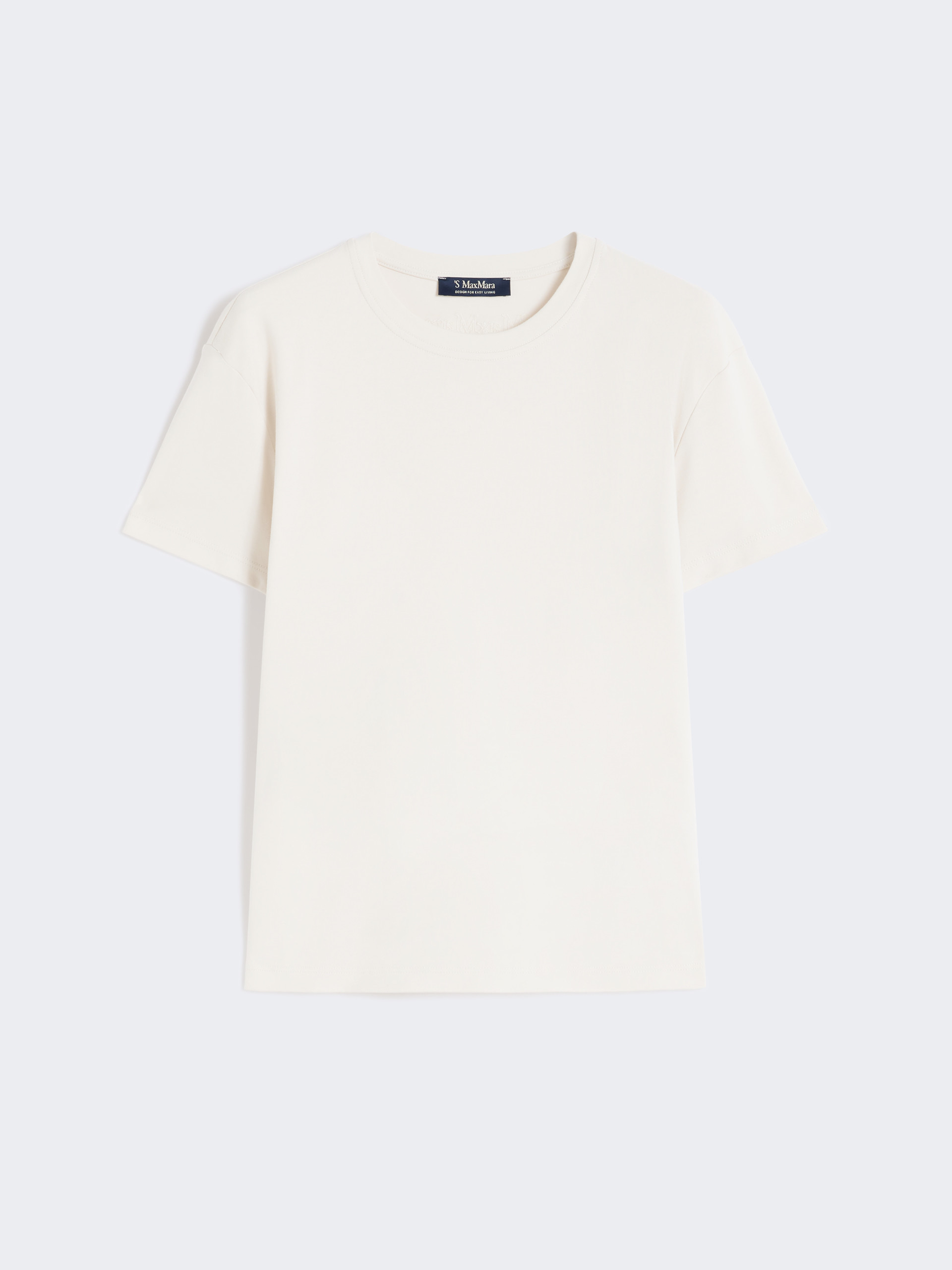 基础款棉质针织T恤,正面饰有徽标绣线。直筒版型,圆领设计,直下摆。